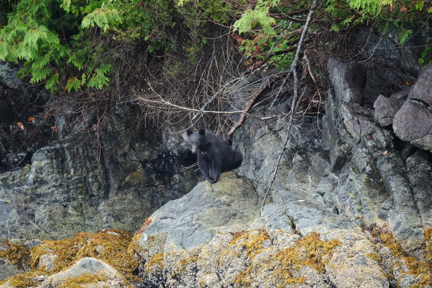 April through June is a special time for guided wilderness tours on the British Columbia coast. Black bears (mɛxaɬ) venture to the rocky beaches to replenish fat stores in preparation for breeding, humpback whales migrate back home from their tropical breeding waters, while transient killer whales enjoy seafood feasts.
